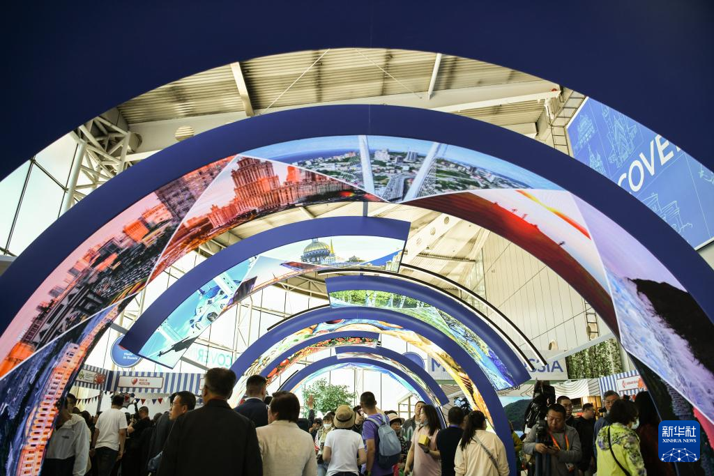 5月18日,人們走進(jìn)在哈爾濱國際會展中心舉行的第八屆中俄博覽會展館。新華社記者 王松 攝