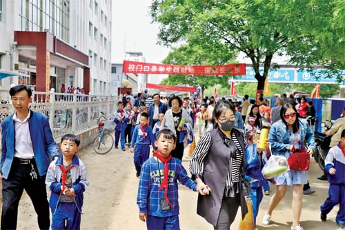 下學(xué)時(shí)段長(zhǎng)征路小學(xué)門(mén)前秩序井然