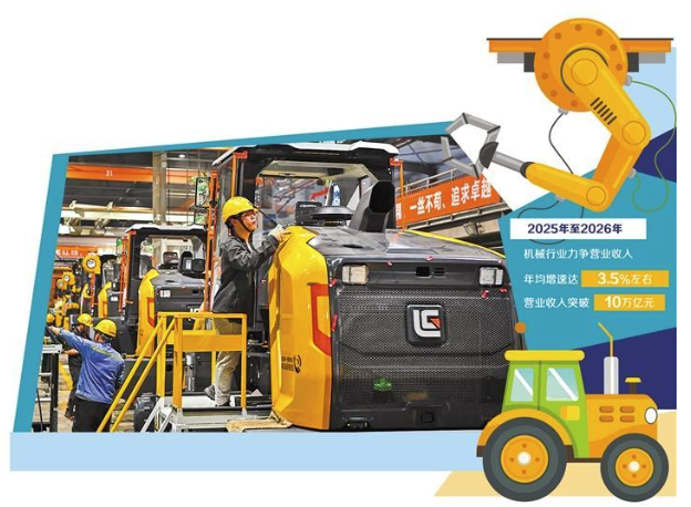 《方案》提出,2025年至2026年,機械行業(yè)運行保持平穩(wěn)向好態(tài)勢,重點產(chǎn)業(yè)鏈供應(yīng)鏈韌性和安全水平持續(xù)提升,發(fā)展質(zhì)量效益邁上新臺階,力爭營業(yè)收入年均增速達到3.5%左右,營業(yè)收入突破10萬億元。中國機械工業(yè)聯(lián)合會相關(guān)負責(zé)人表示,《方案》的目標設(shè)定,體現(xiàn)了規(guī)模與質(zhì)量并重的系統(tǒng)性思維,強調(diào)供給和需求兩側(cè)協(xié)同發(fā)力。