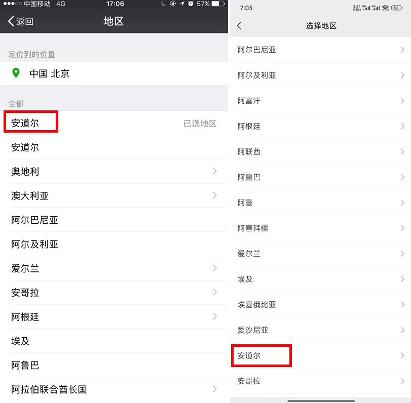 很多人在注冊微信的時(shí)候,沒在列表中翻找自己真正的所在地,微信就默認(rèn)選擇了排在第一的安道爾。