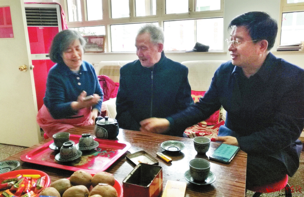 初心如長(zhǎng)風(fēng),鼓起帆船;使命如燈塔,引領(lǐng)征程。在喜迎建黨100周年之際,4月2日,定襄縣委常委、組織部長(zhǎng)華永軍深入南關(guān)村看望53年黨齡老黨員、年過(guò)古稀的退休干部續(xù)佩山和他妻子侯春全,學(xué)黨史、憶初心、感黨恩。 (郭 健 攝)