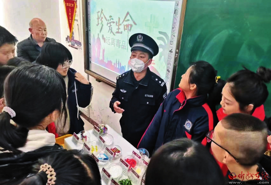 為持續(xù)深化毒品預防教育工作,增強師生識毒、防毒、拒毒的意識和能力,筑牢校園禁毒防線,近日,市公安局忻府分局董村派出所民警聯(lián)合社區(qū)戒毒(康復)中心工作人員,走進董村中學,開展禁毒宣傳教育活動。