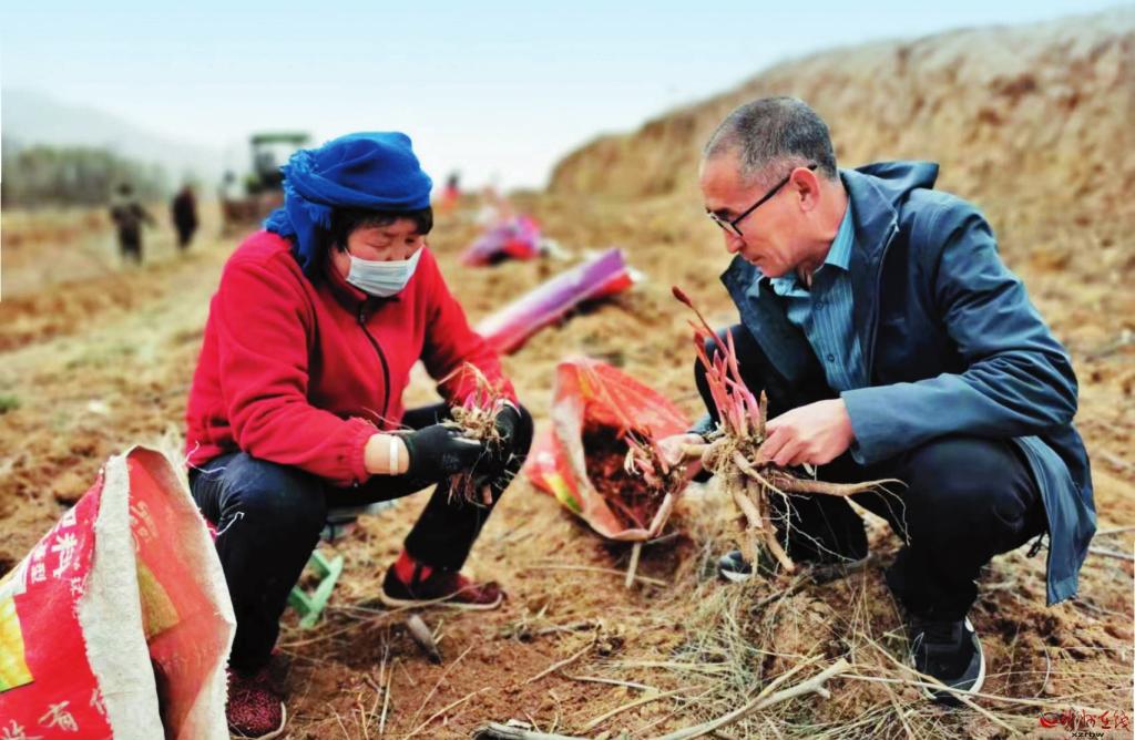 近日,五臺縣陽白鄉(xiāng)桑院村北部嶺坡地種植的大片芍藥進(jìn)入收獲季。村黨支部書記、村委會主任李肖峰帶領(lǐng)村民忙著機(jī)械采挖、分級歸類、拾撿裝運(yùn)、晾曬、銷售等,田間地頭一派忙碌景象。多年來,陽白鄉(xiāng)黨委政府不斷調(diào)整農(nóng)業(yè)產(chǎn)業(yè)結(jié)構(gòu),通過鼓勵農(nóng)民種植芍藥、黃芩、黃芪等中藥材,帶動當(dāng)?shù)厝罕娫鍪罩赂?。上圖為機(jī)械采挖場景;下圖為李肖峰為村民講解藥材分級歸類注意事項。(王金龍攝)