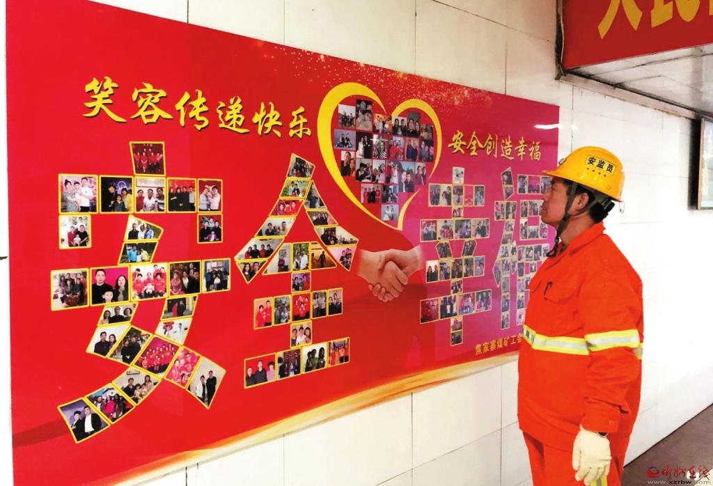 “快看,咱們的‘全家?!蠅??!薄叭刖澳軌蛟诰诳吹郊胰说恼掌?,心里感覺特別暖?!薄?,在軒崗煤電公司焦家寨礦安全文化長廊,墻上138張照片組成的愛心和安全幸福字樣圖案,讓入井職工感受到企業(yè)的囑托和家人濃濃的愛。