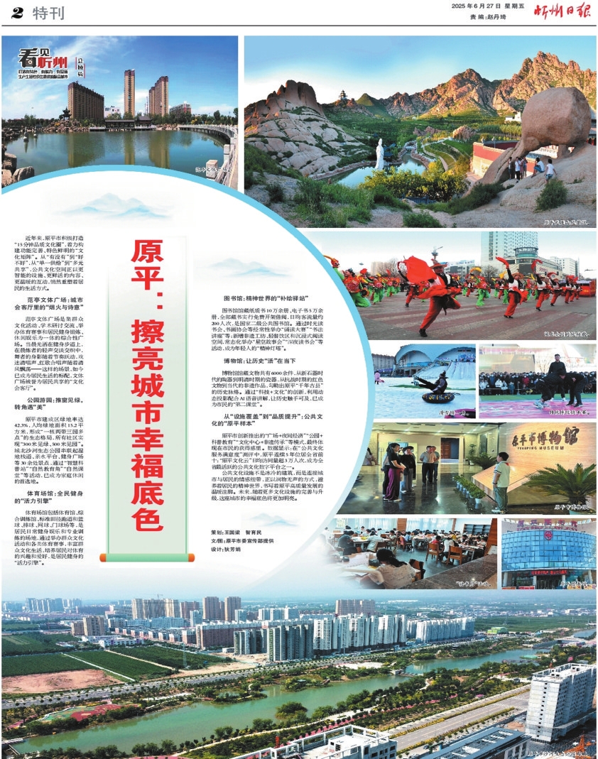 從今天起,《看見忻州》推出縣域篇,展示各縣(市)在基礎(chǔ)設(shè)施、文化場館、公園綠地等方面的成績,反映城市品質(zhì)和人民生活水平的提升。本報二版整版推出首篇《原平:擦亮城市幸福底色》,以饗讀者。