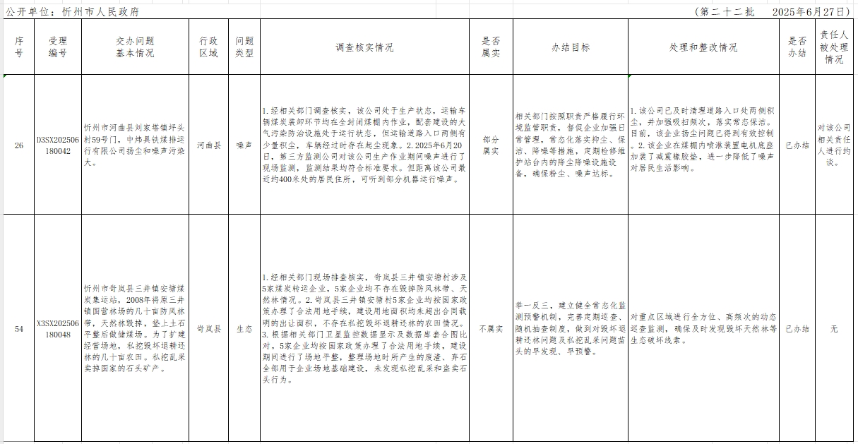 中央生態(tài)環(huán)境保護(hù)督察組群眾信訪舉報(bào)轉(zhuǎn)辦和邊督邊改公開(kāi)情況一覽表(第二十二批)