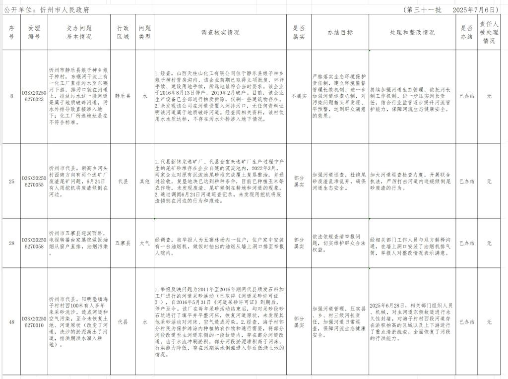 中央生態(tài)環(huán)境保護(hù)督察組群眾信訪(fǎng)舉報(bào)轉(zhuǎn)辦和邊督邊改公開(kāi)情況一覽表(第三十一批).xlsx