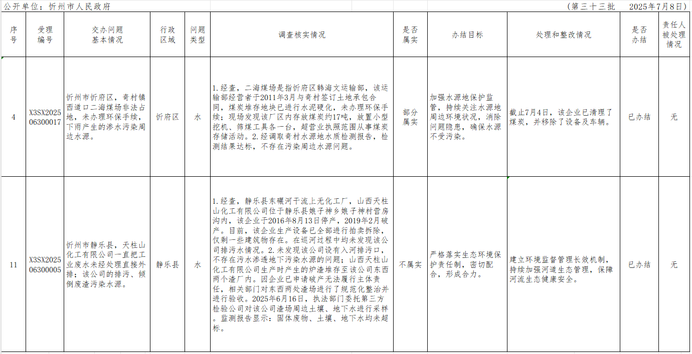 中央生態(tài)環(huán)境保護(hù)督察組群眾信訪舉報轉(zhuǎn)辦和邊督邊改公開情況一覽表(第三十三批)