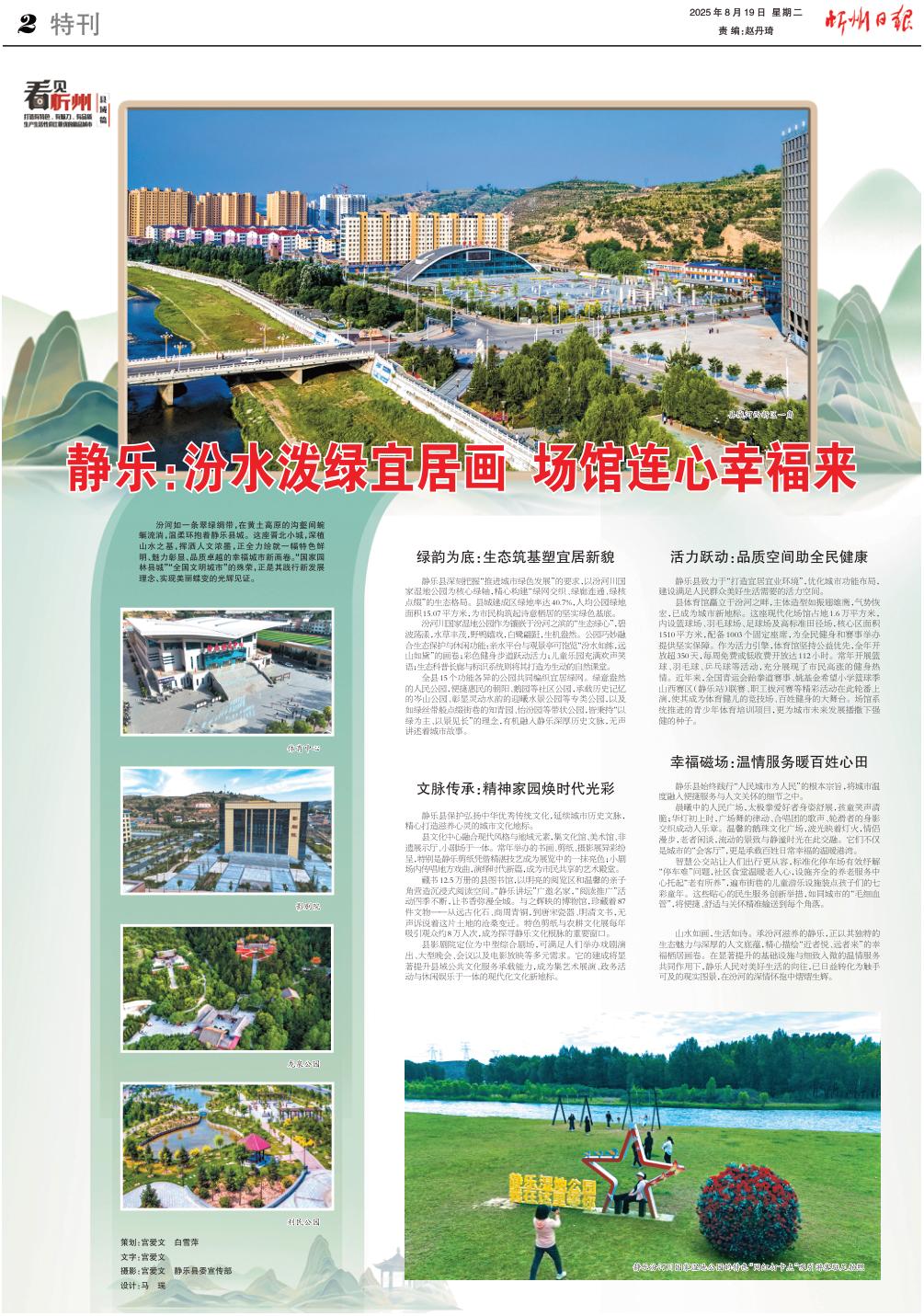 汾河如一條翠綠綢帶,在黃土高原的溝壑間蜿蜒流淌,溫柔環(huán)抱著靜樂縣城。這座晉北小城,深植山水之基,揮灑人文濃墨,正全力繪就一幅特色鮮明、魅力彰顯、品質(zhì)卓越的幸福城市新畫卷?!皣覉@林縣城”“全國文明城市”的殊榮,正是其踐行新發(fā)展理念、實(shí)現(xiàn)美麗蝶變的光輝見證。