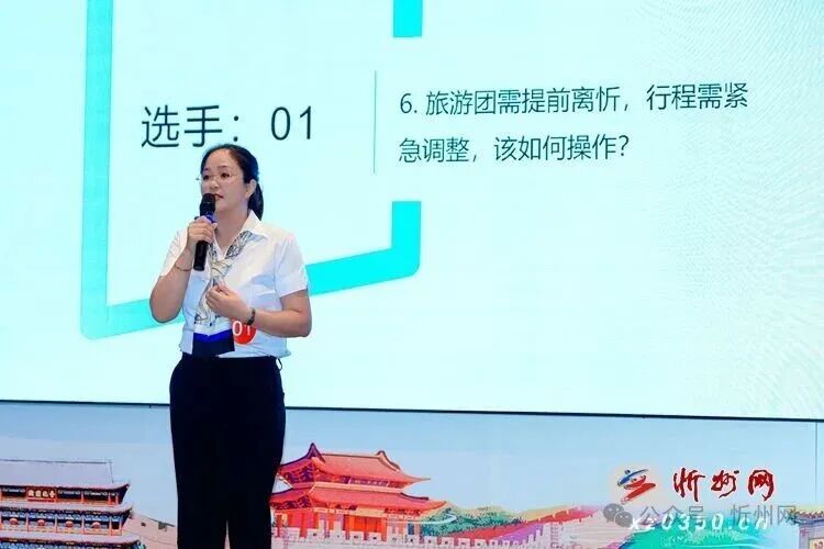 決賽現(xiàn)場亮點紛呈,選手們以生動語言勾勒忻州文旅全景:有的以 “行走‘忻’長城” 為主題,串聯(lián)偏關(guān)老牛灣、代州邊靖樓的邊塞傳奇;有的聚焦 “探訪‘忻’建筑”,解讀應(yīng)縣木塔的營造技藝與佛光寺的千年底蘊;還有的通過 “自在‘忻’生活” 主題,將寧武毛健茶、忻府區(qū)面塑等非遺元素融入講解,讓觀眾沉浸式感受地域文化魅力。在模擬帶團(tuán)環(huán)節(jié),選手們針對 “游客突發(fā)不適”“行程臨時調(diào)整” 等真實場景快速響應(yīng),展現(xiàn)出扎實的職業(yè)素養(yǎng)與應(yīng)變能力。