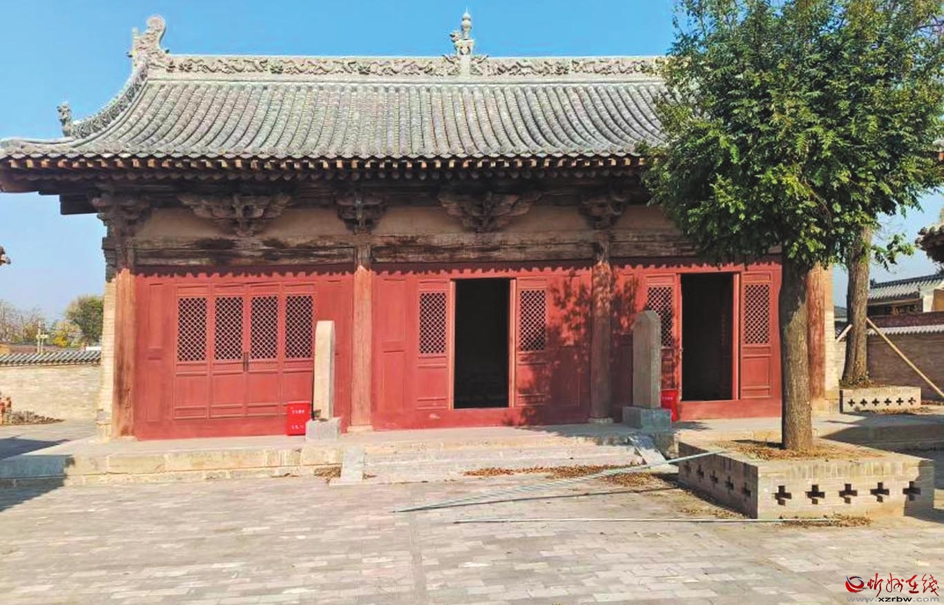 七峰寺位于忻府區(qū)董村鎮(zhèn)孫村村北,坐北向南。創(chuàng)建年代不詳,現(xiàn)存一進院布局,中軸線上建筑依次為山門、過殿、大雄寶殿、東西配殿及東西側耳殿。除大雄寶殿為明代遺構外,其余建筑均為清代遺構。大雄寶殿面闊三間,進深四椽,單檐懸山頂,五檁無廊式構架,斗栱五踩雙昂,平身科施45°斜栱。過殿面闊三間,進深四椽,單檐懸山頂。東西配殿形制同過殿。東西側耳殿均為單體建筑,單檐懸山頂。