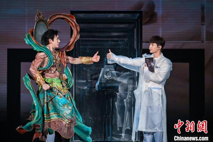 《受到召喚·敦煌》運(yùn)用了“AI+3D+即時(shí)影像+真人動(dòng)畫融合”技術(shù),以高色階大屏,打破了傳統(tǒng)的觀演模式和舞臺(tái)空間,巧妙地融合了歷史與未來、東方與西方文化元素,構(gòu)建起沉浸式觀演空間。舞臺(tái)上,當(dāng)數(shù)字修復(fù)的莫高窟壁畫徐徐展開時(shí),21世紀(jì)30年代的敦煌數(shù)字研究中心實(shí)習(xí)生張燃與20世紀(jì)30年代的“敦煌守護(hù)神”常書鴻,跨越一個(gè)世紀(jì),展開時(shí)空對(duì)話,給現(xiàn)場(chǎng)觀眾留下了深刻印象。