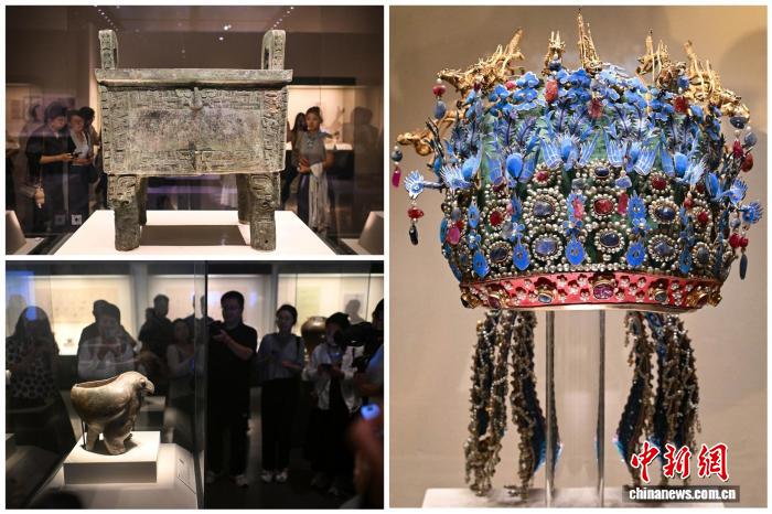 中新網(wǎng)北京7月21日電 (記者 應(yīng)妮)從鷹形陶鼎、紅山文化玉龍、四羊青銅方尊、錯金銀云紋青銅犀尊,到擊鼓說唱俑、秘色葵口瓷盤、孝端皇后鳳冠、霽青釉金彩海晏河清尊……“美之道”文化項目于21日在中國國家博物館舉行首發(fā)式。