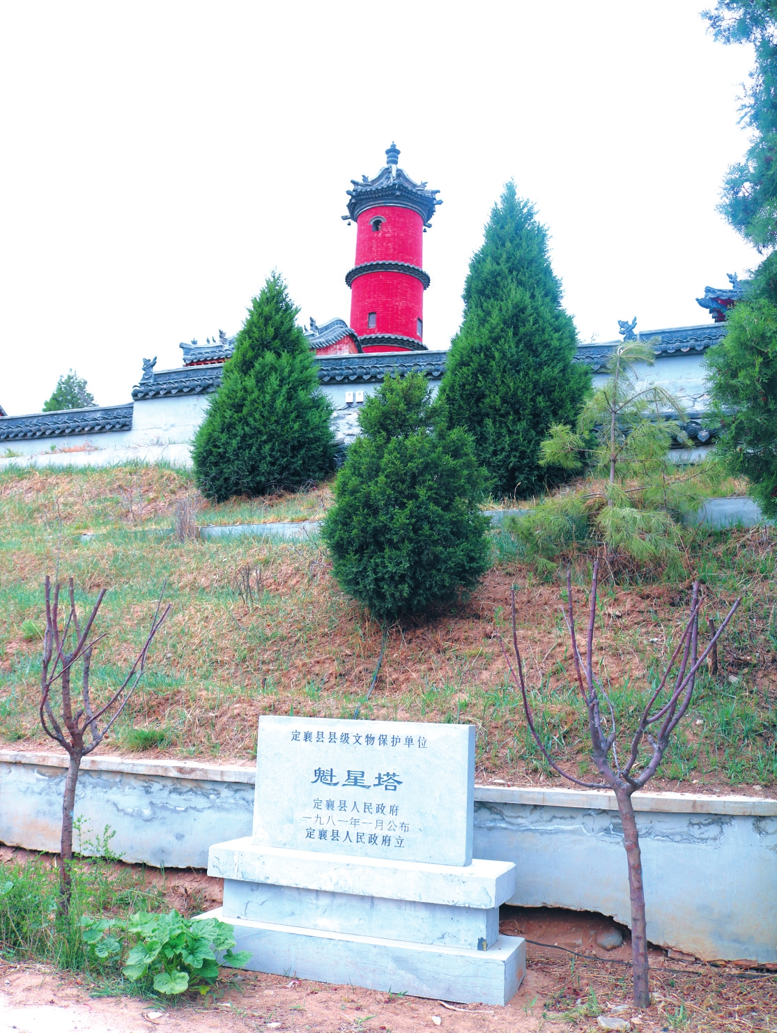 魁星塔位于定襄縣神山鄉(xiāng)神山村東約150米處,為圓形三層實心磚塔。塔基平面呈圓形,石砌而成,高0.52米,直徑2.7米,占地面積5.7平方米。據(jù)塔碣記載,該塔建于清乾隆二十三年(1758),光緒二十一年(1895)維修。塔身為三層圓形結(jié)構(gòu),通高約11米,通體素面,每層設磚砌花牙塔檐,上露筒瓦,三層南側(cè)辟壺門。一層南側(cè)、東側(cè)各嵌塔碣1方。六角攢尖頂,上置剎座露盤、寶珠塔剎。受自然酸雨侵蝕和年久失修等因素影響,塔頂部有所受損。1981年,被公布為縣級文物保護單位。2012年社會集資維修了魁星塔,現(xiàn)保存完好。2022年5月,被公布為市級文物保護單位。
