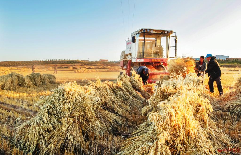 余莊鄉(xiāng)馬營(yíng)村村民機(jī)械化脫粒莜麥