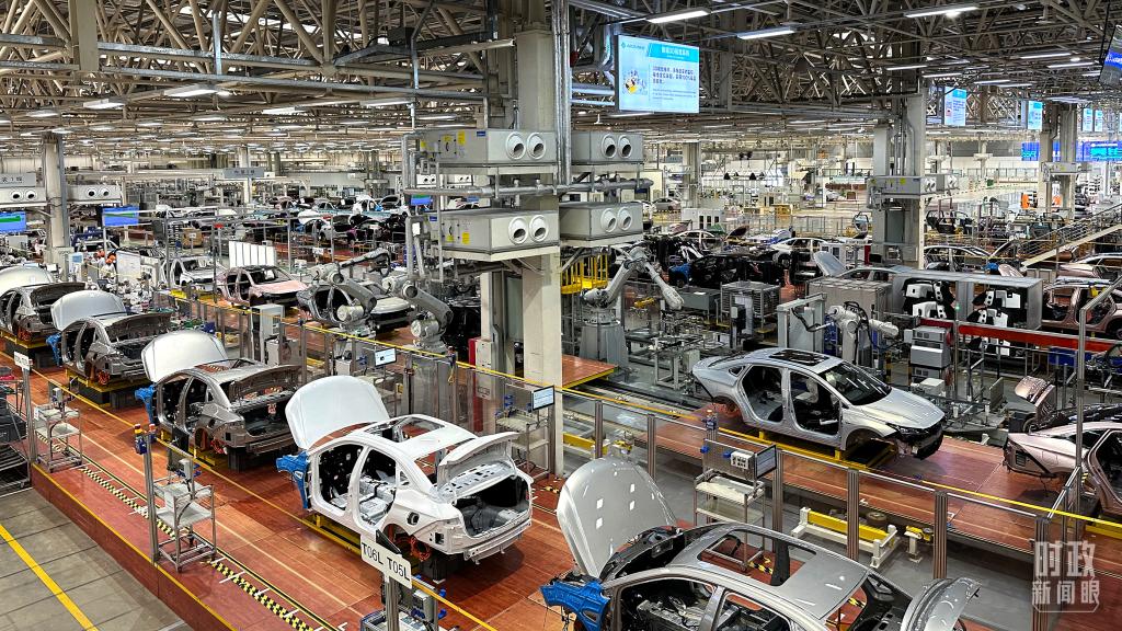 △廣汽埃安總裝車(chē)間智能生產(chǎn)線(xiàn)。(總臺(tái)央視記者趙化拍攝)