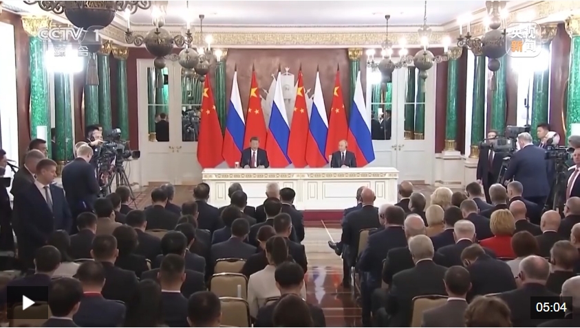 當(dāng)?shù)貢r(shí)間5月8日中午,國(guó)家主席習(xí)近平同俄羅斯總統(tǒng)普京在莫斯科克里姆林宮會(huì)談后共同會(huì)見記者。