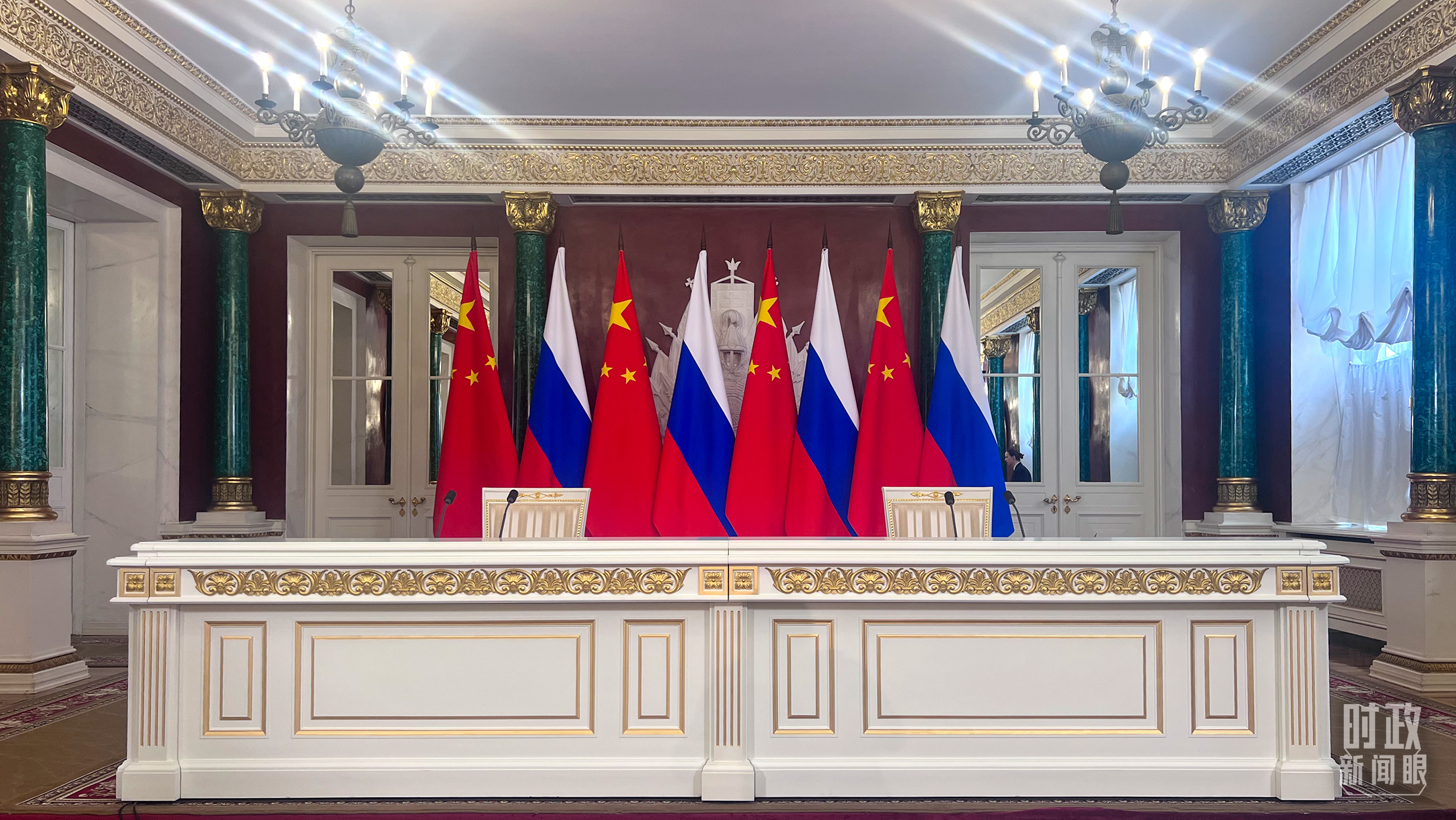 △習(xí)主席和普京總統(tǒng)舉行大范圍會談的會場。(總臺央視記者趙東辰拍攝)