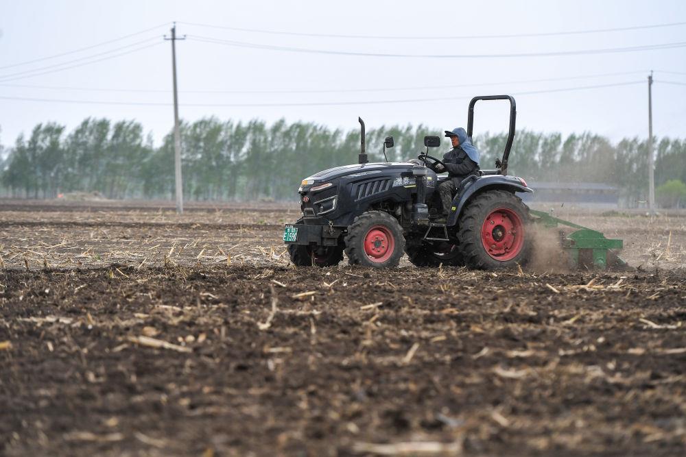 △2025年5月,在吉林公主嶺陶家屯鎮(zhèn)馬家店村,農(nóng)民駕駛旋耕機(jī)為播種做準(zhǔn)備。