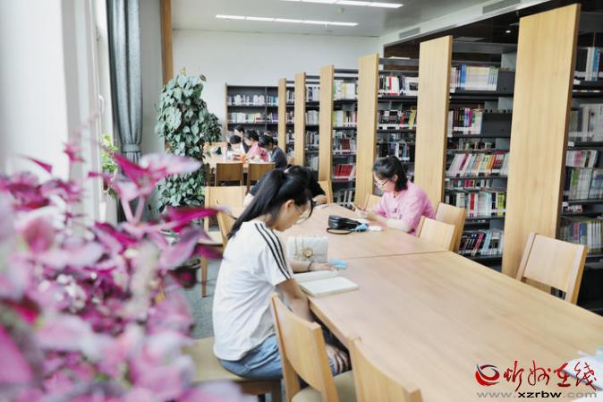 7月15日,原平市圖書館里,青少年正在閱讀書籍??崾顏砼R,圖書館成了學(xué)子增長(zhǎng)知識(shí)、消暑納涼的好去處。褚 震 攝