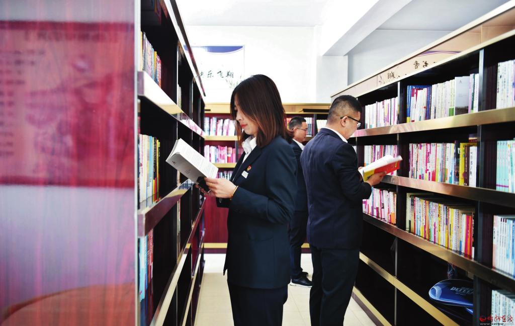 近日,五臺農(nóng)商行舉辦讀書活動。設(shè)施齊全、安靜溫馨、滿溢書香的閱覽室,為大家營造了一個良好的讀書氛圍。愛讀書、讀好書、善讀書已成為員工們的一種生活常態(tài)。(閆澤峰 攝)