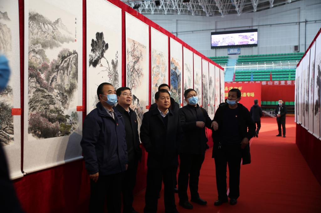 活動現(xiàn)場,專業(yè)人員為縣領(lǐng)導(dǎo)講解美術(shù)類參展作品的詳細(xì)內(nèi)容。