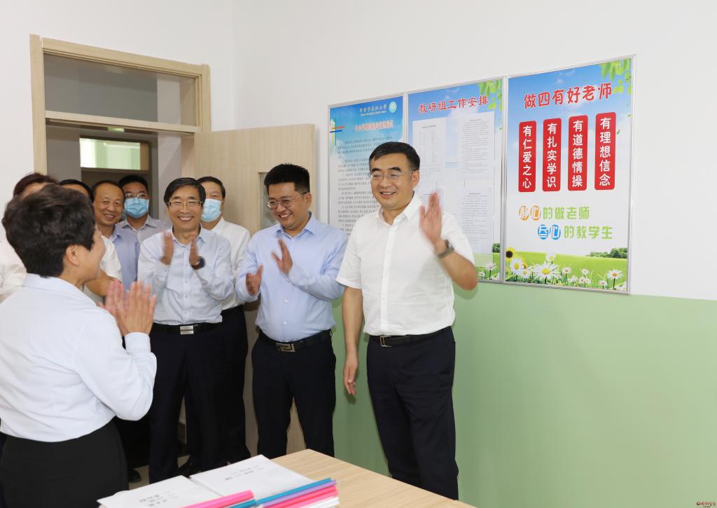 李建國(guó)詳細(xì)了解各學(xué)校的硬件設(shè)施和教師隊(duì)伍情況,察看學(xué)校開設(shè)的勞動(dòng)技能等特色課程,并與優(yōu)秀教師代表和中小學(xué)校長(zhǎng)、幼兒園園長(zhǎng)座談,聽取推進(jìn)全市教育事業(yè)發(fā)展的意見建議。