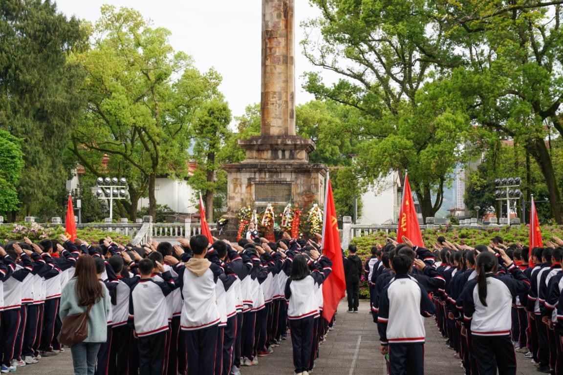 △4月1日,福建武夷山市少先隊(duì)員在列寧公園閩北革命烈士紀(jì)念碑前宣誓。