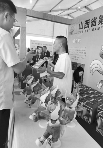開(kāi)幕式前,提前一兩個(gè)小時(shí)安檢入場(chǎng)的觀眾,遠(yuǎn)遠(yuǎn)就看到“翔翔”的召喚,紛紛在吉祥物專營(yíng)區(qū)扎堆。“68元一個(gè),就剩30個(gè)了?!睂I(yíng)區(qū)的售賣(mài)者告訴山西晚報(bào)記者,他們也沒(méi)想到這只褐馬雞如此受歡迎,很快就要被搶沒(méi)了。大同的趙女士搶到一個(gè),她說(shuō)朋友從外地剛回來(lái)不方便出門(mén),讓她買(mǎi)一個(gè)留作紀(jì)念。