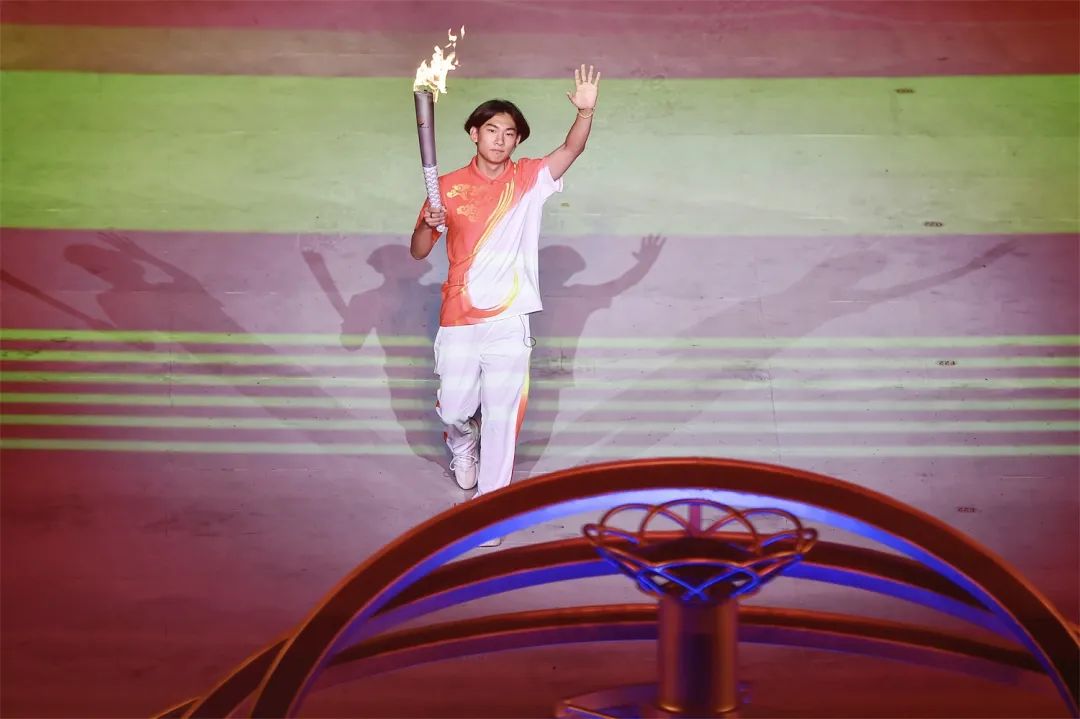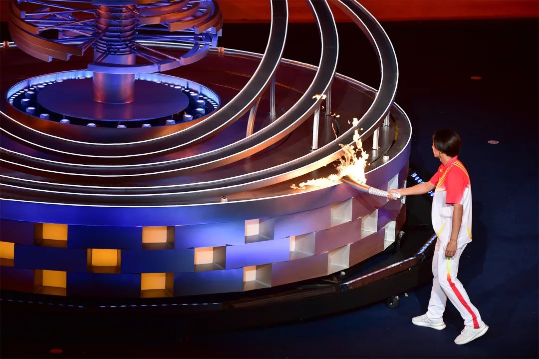 開幕式之夜,最為激動人心的就是點火時刻。在射擊世界冠軍張益梵、鄉(xiāng)村干部王春、環(huán)衛(wèi)工人孫秀蘭、大國工匠官生花、公交司機馮冰依次傳遞過后,火炬來到了最后一棒火炬手、北京冬奧會冠軍蘇翊鳴的手中。主火炬塔點火裝置以山西民俗“旺火”為設計依據(jù),采用清潔能源“微火”點燃的方式。蘇翊鳴手持火炬,在萬眾矚目之下,以“微火”點“旺火”,歷史、現(xiàn)在與未來,在這一刻融匯賡續(xù)。