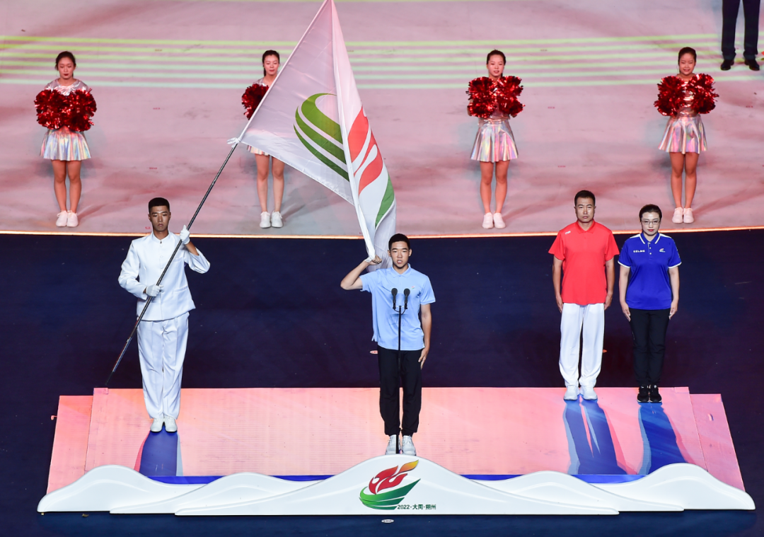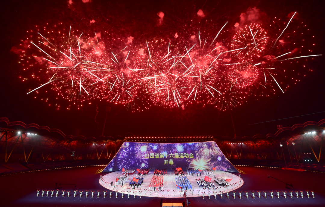 富有地域特色的暖場表演過后,在一萬多名現(xiàn)場觀眾聲震云霄的倒計時中,開幕儀式正式開始。國旗和會旗入場儀式后,各代表隊運動員、教練員在引導員和執(zhí)旗手的引導下,闊步入場。大同和朔州作為東道主,壓軸亮相,得到了觀眾的熱烈歡呼。之后,升國旗儀式和升會旗儀式莊嚴進行,山西省第十六屆運動會宣布開幕。