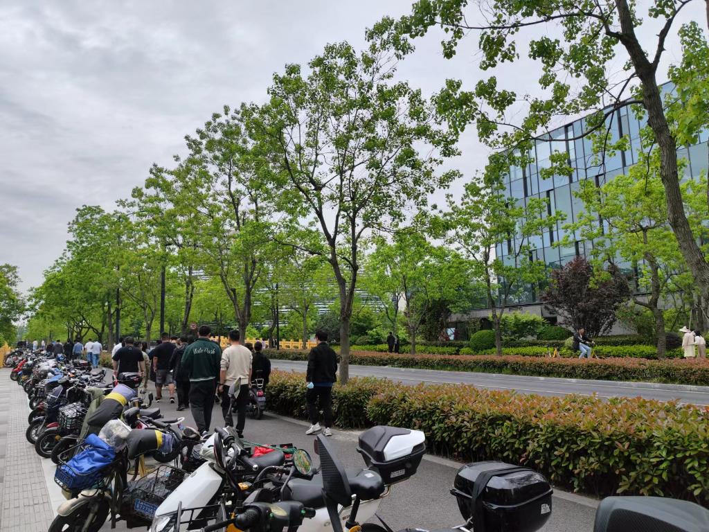 午休時間的張江街頭掠影。新華社記者董雪 攝