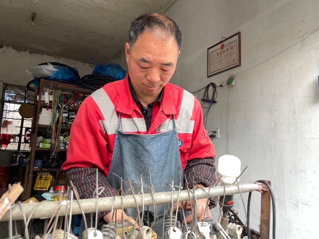 在胡師傅修車(chē)鋪內(nèi),一張個(gè)體戶(hù)營(yíng)業(yè)執(zhí)照格外醒目。 新華社記者 程思琪攝