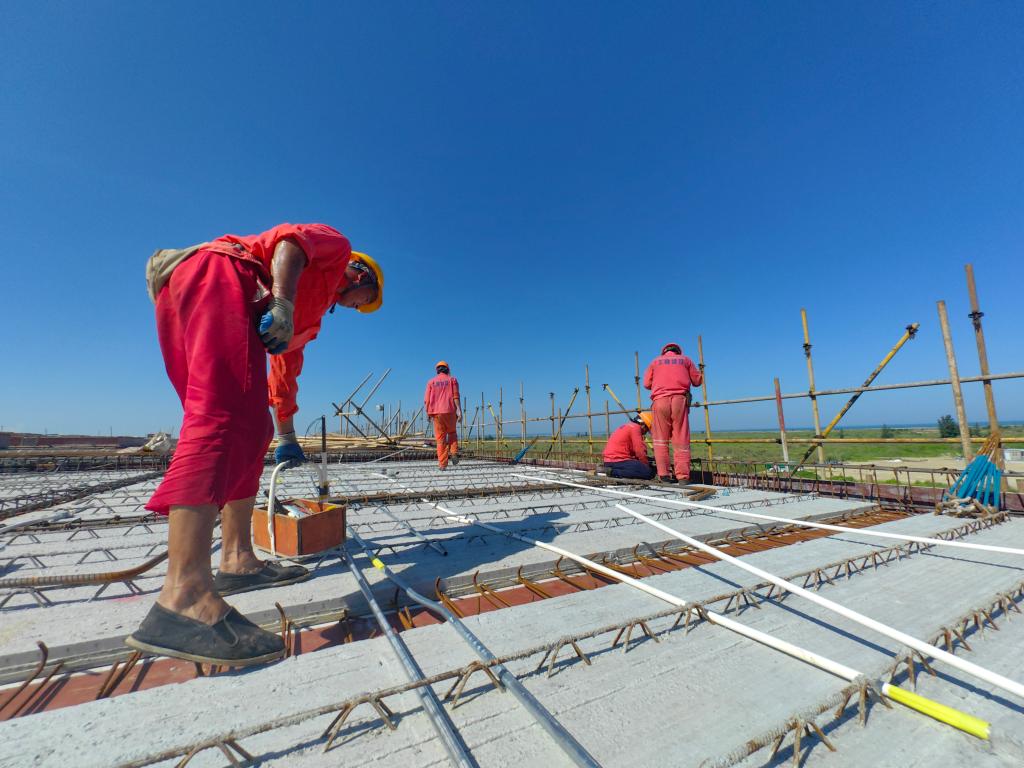 備戰(zhàn)全島封關,相關硬件設施建設不能落后。在洋浦國際集裝箱碼頭附近,洋浦港封關運作項目建設現(xiàn)場一片繁忙,百余名工人頂著烈日或扎鋼筋,或拌水泥,或裝樓板,個個汗流浹背?!?月要完工,助力海南自貿(mào)港到今年底具備封關運作硬件條件?!表椖控撠熑死顤|冬說。