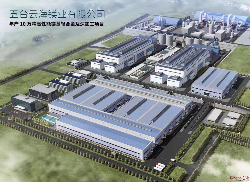 五臺(tái)云海鎂業(yè)年產(chǎn) 10 萬噸高性能鎂基輕合金及深加工項(xiàng)目效果圖 。