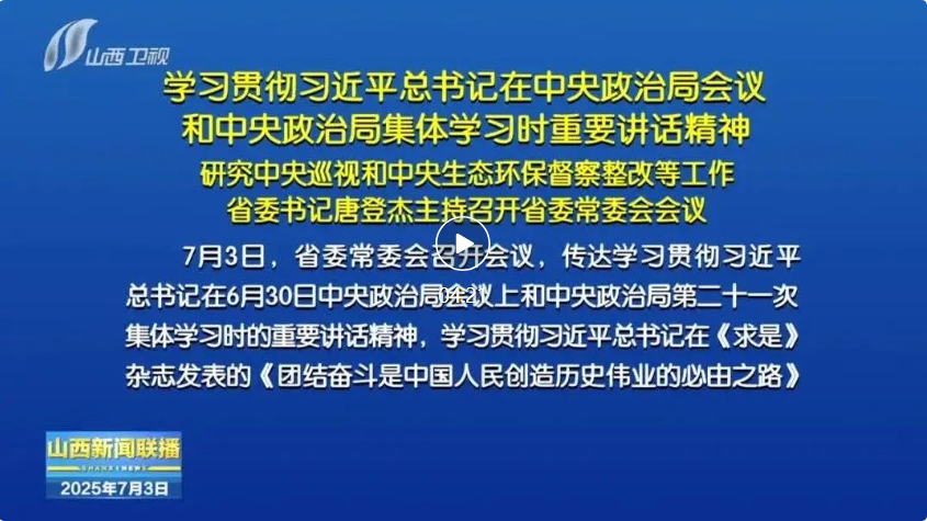 7月3日,省委常委會召開會議,傳達(dá)學(xué)習(xí)貫徹習(xí)近平總書記在6月30日中央政治局會議上和中央政治局第二十一次集體學(xué)習(xí)時的重要講話精神,學(xué)習(xí)貫徹習(xí)近平總書記在《求是》雜志發(fā)表的《團(tuán)結(jié)奮斗是中國人民創(chuàng)造歷史偉業(yè)的必由之路》重要文章,傳達(dá)貫徹張國清同志在晉調(diào)研指示精神,聽取中央巡視邊巡邊改、中央生態(tài)環(huán)保督察邊督邊改工作情況匯報,研究部署下一步工作。省委書記唐登杰主持會議。