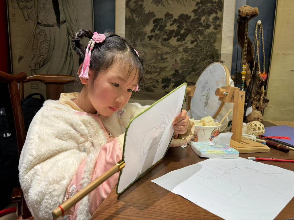 圖為南昌萬(wàn)壽宮歷史文化街區(qū)“祥龍”造型。 新華社記者賴星 攝 “一眼穿越千年前,萬(wàn)壽宮里過(guò)福年”?!跋辇垺辈薀羯砗蟊闶氰F柱萬(wàn)壽宮,有著1600余年的歷史,是江西地方文化的代表符號(hào)?!八蚣o(jì)念‘江西福主’許遜而起,因江西移民的遷徙而盛,又隨‘江右商幫’的崛起而遍布五湖四海?!蹦喜f(wàn)壽宮歷史文化街區(qū)首席文化顧問(wèn)梅聯(lián)華長(zhǎng)期致力于研究江西民俗,對(duì)萬(wàn)壽宮文化如數(shù)家珍。 全世界上千座萬(wàn)壽宮中,位于南昌市西湖區(qū)的鐵柱萬(wàn)壽宮尤為特殊,它被稱為天下萬(wàn)壽宮的祖庭,曾歷經(jīng)多次損毀與重建。為了復(fù)活這一重要人文地標(biāo),南昌通過(guò)引進(jìn)老字號(hào)、非遺、創(chuàng)意產(chǎn)業(yè)等優(yōu)質(zhì)文化業(yè)態(tài),植入現(xiàn)代文旅思路,賦予其新的生命。如今這條街區(qū)成了名副其實(shí)的“南昌會(huì)客廳”,還被評(píng)為“國(guó)家級(jí)夜間文化和旅游消費(fèi)集聚區(qū)”。 彩燈鮮艷、人流熙攘處,一場(chǎng)“龍族奇遇記”正在上演。 游客們手持游戲地圖,四處搜尋著四位龍?zhí)覰PC(非玩家角色)的身影,只要回答出他們所提問(wèn)題,就能集齊貼紙兌換新年禮物。一襲白袍、頭戴龍角的北海龍?zhí)痈σ涣料啵臀吮姸嘤慰偷哪抗?,猜字謎、說(shuō)成語(yǔ)、對(duì)詩(shī)詞……精彩的互動(dòng)掀起一輪又一輪高潮。 “聽采茶戲、品美食、看非遺、尋福龍”,人們漫步于石板街道,探尋著翠花街、籮巷、醋巷、廣潤(rùn)門街、合同巷等“三街五巷”的老城故事。走過(guò)喧鬧的合同巷,推開朱紅色的大門,進(jìn)入非遺匠心館。正在此間舉行的“當(dāng)龍遇藝,一場(chǎng)新年的邂逅”民間文藝系列活動(dòng),集中呈現(xiàn)了贛發(fā)繡、臨川篾編、南昌魚拓等非遺技藝。 在贛發(fā)繡非遺展臺(tái),風(fēng)景、人物、福龍等刺繡作品栩栩如生。游客們以繡針為筆,以發(fā)絲為線,在團(tuán)扇扇面上進(jìn)行刺繡。