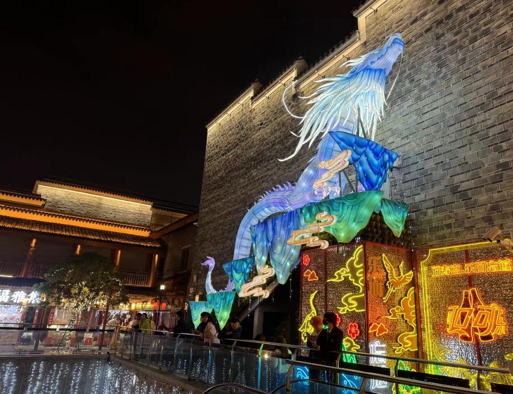 新華社南昌2月15日電題:新春尋“龍”記 新華社記者賴星 燈光映照下,一條“祥龍”昂首,曲頸,似遨游在山川之上。 春節(jié)期間,各式各樣的龍形圖案和火紅的燈籠扮靚了南昌萬(wàn)壽宮歷史文化街區(qū)。祈福大典、非遺舞龍、龍族奇遇記、“有龍則靈”燈展等以“龍”為主題的活動(dòng)輪番上演,為游客帶來(lái)了專屬于龍年的儀式感。