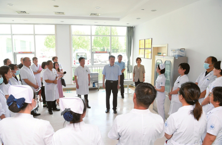 省委宣講團在臨汾市人民醫(yī)院與醫(yī)護人員代表交流互動。魏華攝 連日來,平陽大地處處涌動著學(xué)習(xí)黨的二十屆三中全會精神的熱潮。 8月6日,在臨汾市人民醫(yī)院,省委宣講團成員,省衛(wèi)健委黨組書記、主任張波與廣大醫(yī)護人員代表進行面對面交流互動,暢談學(xué)習(xí)黨的二十屆三中全會精神體會,共謀改革創(chuàng)新發(fā)展之路。 “黨的二十屆三中全會提出促進優(yōu)質(zhì)醫(yī)療資源擴容下沉和區(qū)域均衡布局,加快建設(shè)分級診療體系,醫(yī)院怎樣在分級診療工作中更好發(fā)揮作用?”“護理服務(wù)與提升群眾看病就醫(yī)的體驗密切相關(guān),省里在改善護理服務(wù)方面有哪些舉措?”……在臨汾市人民醫(yī)院內(nèi)分泌科護理站,面對大家關(guān)心的話題,張波逐一闡釋解答,將黨的二十屆三中全會精神娓娓道來,給大家上了一堂生動的思想課,大家頻頻點頭、熱烈鼓掌。 面對面、接地氣的互動交流,讓基層醫(yī)護人員對黨的二十屆三中全會精神有了更加全面深入的認識和理解,大家紛紛表示提振了信心,鼓舞了干勁。臨汾市人民醫(yī)院急診醫(yī)學(xué)科主任毛崇濤說:“作為一名醫(yī)療工作者,我對全會提出的‘解決好人民最關(guān)心最直接最現(xiàn)實的利益問題’感觸頗深。在今后工作中,我們要在學(xué)科建設(shè)、科研教學(xué)、新技術(shù)創(chuàng)新等方面不斷開拓進取,進一步提升醫(yī)療服務(wù)水平和能力,以工作實效守護人民群眾生命健康?!?/p> “黨的二十屆三中全會為我們今后的工作指明了方向。我們將堅持以人民為中心,積極打造流程更科學(xué)、模式更連續(xù)、服務(wù)更高效、環(huán)境更舒適、態(tài)度更體貼的中國式現(xiàn)代化醫(yī)療服務(wù)模式,為人民群眾提供更加優(yōu)質(zhì)高效的健康服務(wù)?!迸R汾市人民醫(yī)院重癥醫(yī)學(xué)科護士長張艷麗表示。 思想在交融、信心在凝聚、力量在傳遞。隨著時間的推移,一問一答間凝聚起臨汾市廣大醫(yī)護人員奮力前行的強大合力,也激勵著全市干部群眾汲取奮進力量,凝聚思想共識,共同書寫中國式現(xiàn)代化建設(shè)新篇章。 本報記者郭玉琴 (責(zé)任編輯:盧相汀) |