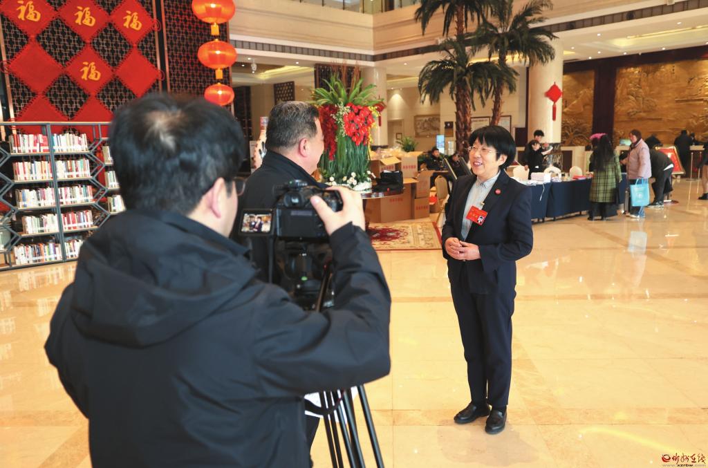 市人大代表接受媒體采訪。 本報記者 張存良攝